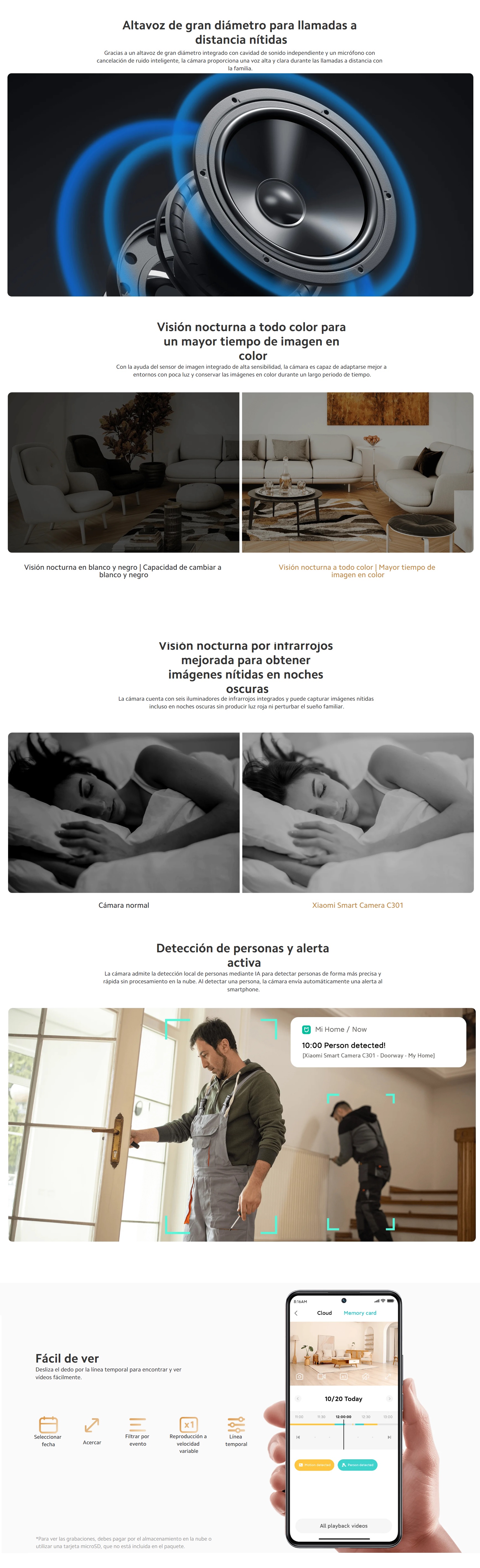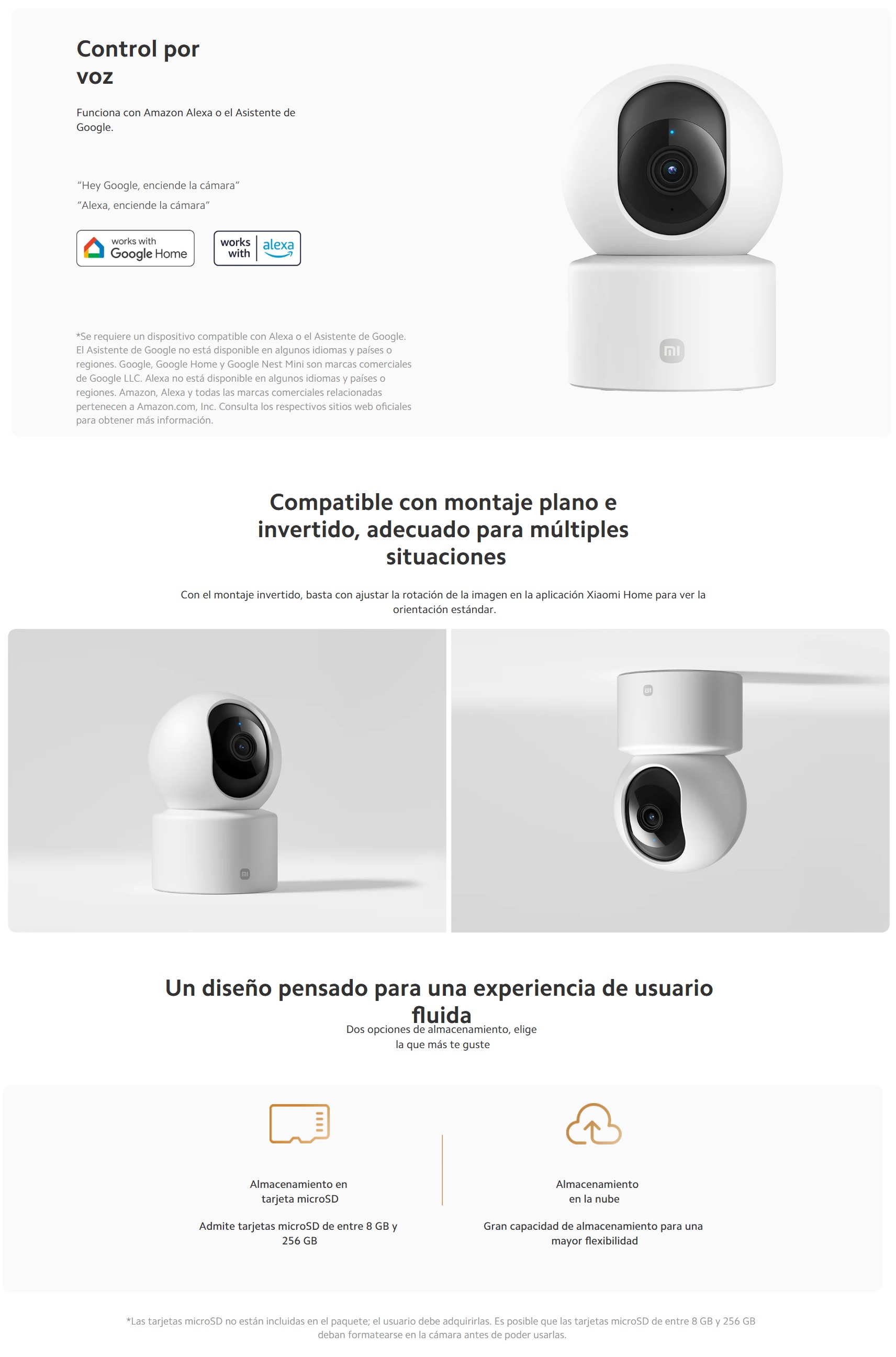 Almacenamiento Almacenamiento en la nube/tarjeta microSD (admite de 8 a 256GB)